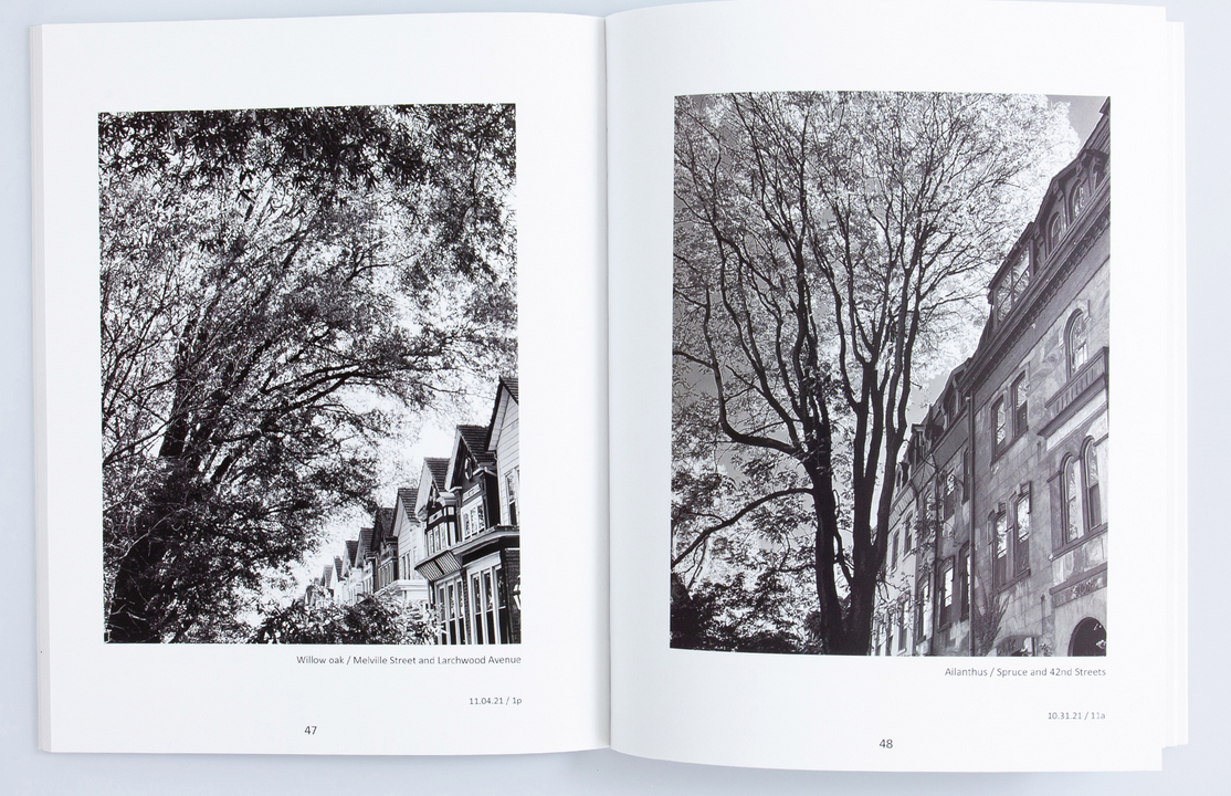 “Of Limbs, Leaves, and Hope’ represents the unforeseen gain of biophilic relief from the coronavirus pandemic. Forced to work remotely because of COVID-19, daily walks and bike rides became an essential distraction from hours of uninterrupted screen time. Photography became a pastime, and as weeks turned into months the city began to present itself anew: streets, plazas, parks, church grounds, cemeteries, and untold nooks and crannies not before seen or recorded. Trees soon began to dominate the compositions, as if beckoning to stand out against the gridiron construction. And so, the project began: to record the presence of trees as foreground actors of the everyday urban landscape. Beginning in the spring of 2020, hundreds of photographs were taken, often times of the same tree at different times of the day, under varying light conditions, and through the seasons. A sense of intimacy developed: of seeing how a plant breathes-in the city over time, silently, exhaling in return nurturing permanence and resilience.”